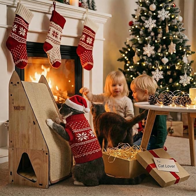 - Built to Last for families seeking high-quality scratching products: Patent-pending interlocking joints of solid wood frame reinforced by screws, this wood cat scratcher is much long-lasting than flimsy cardboard cat scratcher with density frame.The horizontal or inclined placement mode of the clawsable cat house is suitable for all floor types (including carpets), providing stable play space for kitten & large cats