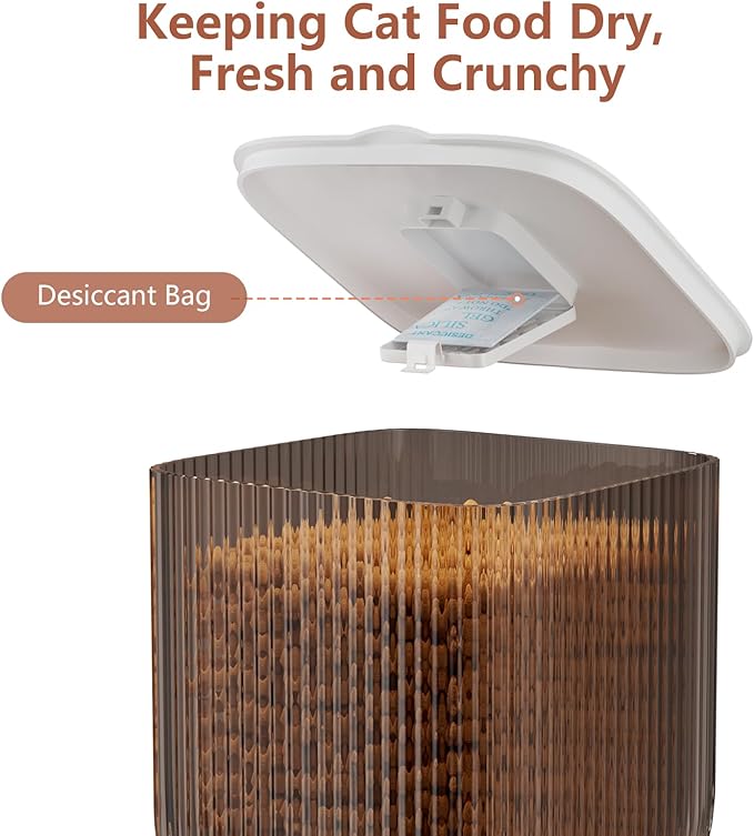 - Moisture-Proof Freshness:The multifunctional auto dog feeder dry food with timer adopts sealed food storage compartment to prevent moisture and freshness locking to keep the taste and nutrition of dry food for a long time to protect the health of pets' diets. 5L large capacity reduces the trouble of food refilling to satisfy the pets' needs for a long period of time