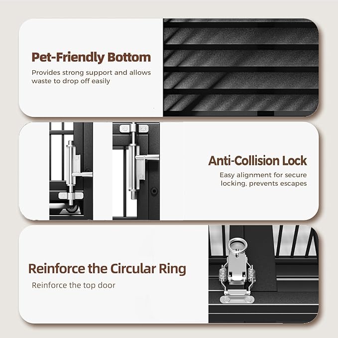 - Two Doors&Four Locks : The top door opens over 90° for easy interaction. The front door provides convenient access and can be detached for use as a cozy dog house. With four sturdy locks, it prevents even mischievous dogs from escaping.