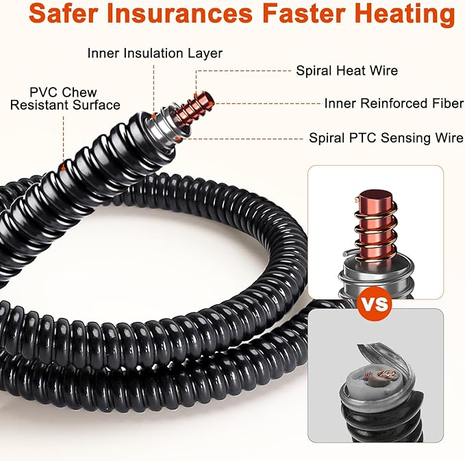 - 🐶【Chew Resistant Cord Protection】In order to prevent dogs from biting the wire and getting electrocuted, the wire is wrapped by spiral chewy cover, no need to worry about leakage, keep your pet safe. With an 83-inch super-long cord, it easily reaches distant outlets without compromising safety.