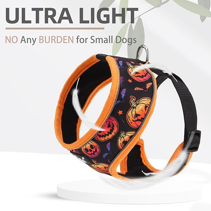 PUPTECK Soft Mesh Dog Harness and Leash Set Pet Puppy Cat Comfort Padded Vest No Pull Harnesses, Halloween Orange, S