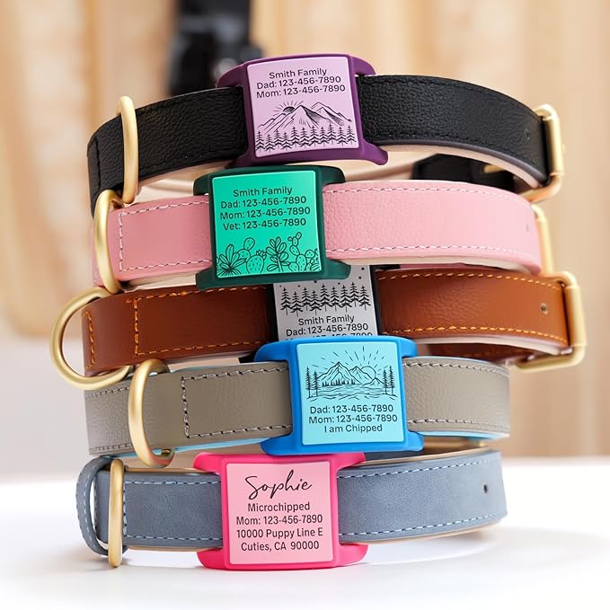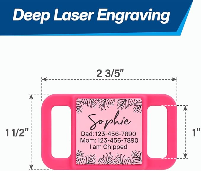 Silent Dog Tag, Personalized Engraved Tracker Case for Pet Collar, Quiet Slide On Tags for Collars