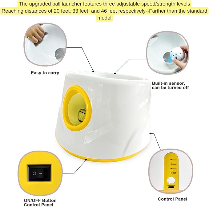 - Upgraded 3-Speed Adjustable Distance: Launches up to 19ft/32ft/45ft (farther than traditional models), fitting indoor/outdoor spaces and dog energy levels.