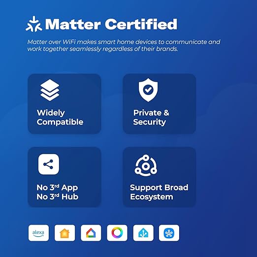 - Seamless Cross-Platform Integration: As a Matter-certified device, the Smart Plug M3 works seamlessly with SmartThings, Apple Home, Amazon Alexa, Google Home, Home Assistant and Homey—no proprietary hub or bridge required. Enjoy true cross-platform control without ecosystem barriers.