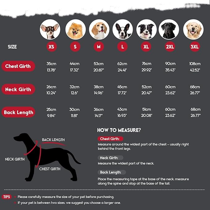 - Perfect Sizes for All Dogs: Available in 7 sizes to fit breeds like French Bulldogs, Labradors, Golden Retrievers, Great Danes, and more, this warm winter dog coat wraps your furry family in cozy protection during cold, snowy weather
