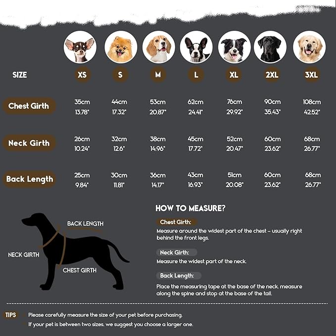 - Perfect Sizes for All Dogs: Available in 7 sizes to fit breeds like French Bulldogs, Labradors, Golden Retrievers, Great Danes, and more, this warm winter dog coat wraps your furry family in cozy protection during cold, snowy weather