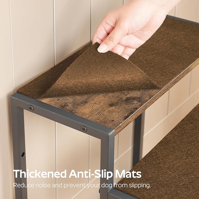 - Anti-Slip Design: Each step of the dog stairs is equipped with a felt anti-slip pad, providing excellent grip to ensure your dog climbs steadily without worrying about slipping, making every trip up and down the stairs a safe and pleasant experience