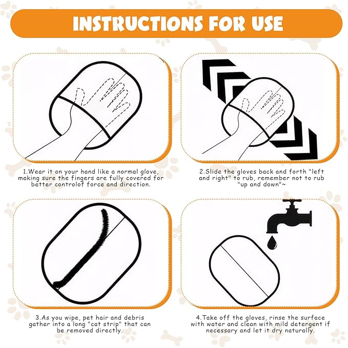 - Elastic Design: Our pet hair removal glove is equipped with an elastic wrist cuff, making it easy to wear and suitable for most hand types. Cat hair remover glove does not need to be tied or fixed on the pet's hair, ensuring that the gloves will not slip off during use, providing you with great convenience.