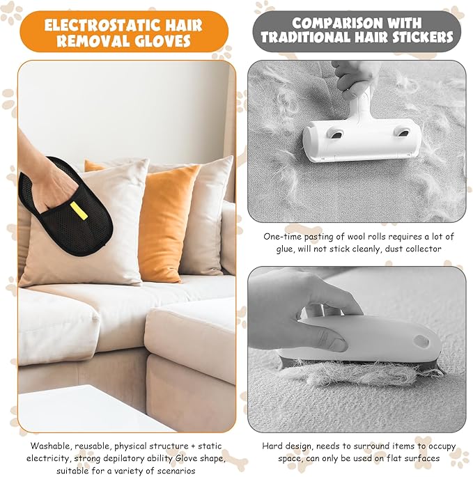 - Multifunctional Care: This static removal gloves is multifunctional. You can use it for combing, cleaning and bathing. Pet grooming gloves can help remove dirt and loose hair on your pet's body while keeping your pet's skin healthy, providing all-round care for your pet.