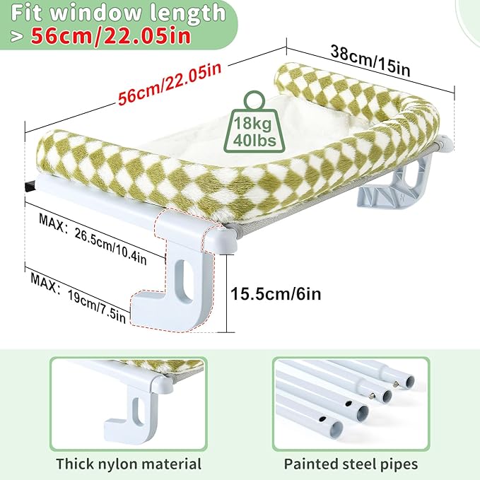 - Important Size Notice – The cat window perch measures 22.05" × 15". Please confirm your windowsill size before purchase. Suitable only for sills with an edge shorter than 2.76", a slot gap over 0.08", and a slot depth of at least 0.6"