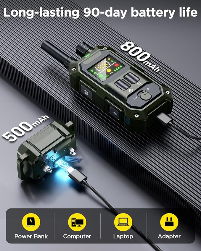 - 【Fits All Sizes Dogs & 90-day Battery Life】Designed for dogs of all sizes (5–150 lbs), the adjustable nylon strap (8–25 inches) ensures a comfortable fit. Powered by an energy-efficient system, the dog shock collar offers an exceptional 90-day battery life on a single charge (based on 1 hour of daily use) - perfect for extended trips or everyday training. Enjoy 2-hour USB-C fast charging for quick top-ups on the go. (Backed by our no-questions-asked-replacement-promise.)