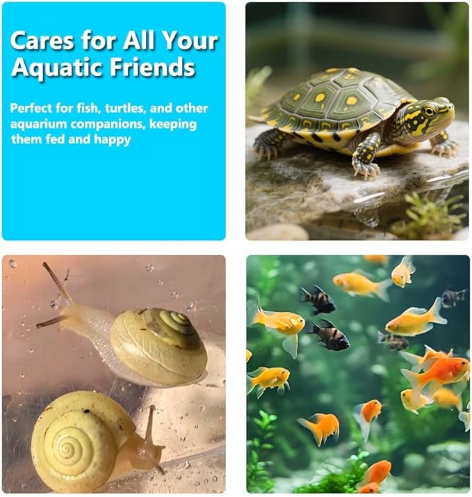 - 【WIDELY APPLICABLE】 No matter the size or type of your tank, or what kind of fish food you use, turtle feeder automatic dispenser easily adapts to meet the feeding needs of all your aquatic pets.