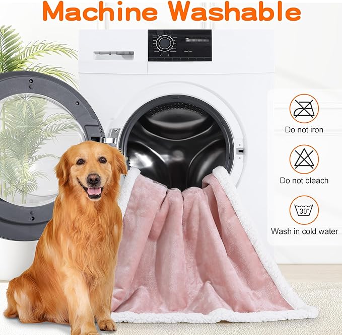 Smiry Waterproof Blanket Throw for Large Dogs, Soft Reversible Dog Blanket for Sofa Couch Bed, Washable Leakproof Sherpa Fleece Furniture Couch Protector(50"x60", Pink/White)