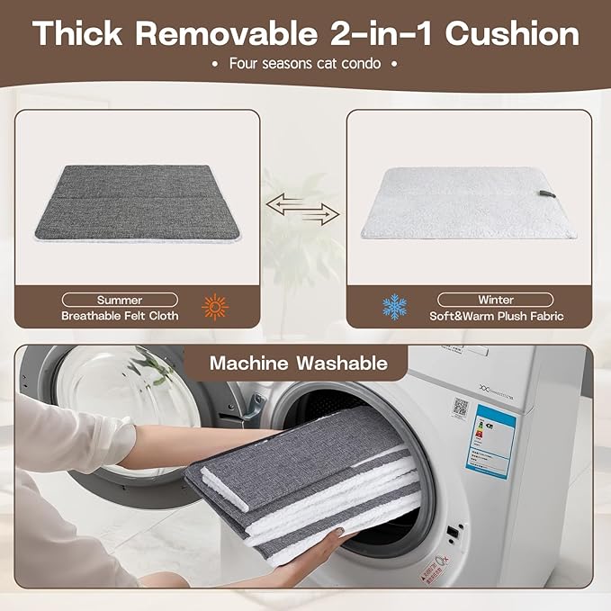 - Reversible Cushion for All Season: This indoor cat bed comes with two reversible cushions. One side is made of soft velvet, providing a warm home for your cat during winter. The other side uses linen fabric, making it comfortable and cool for use during hot summer days.