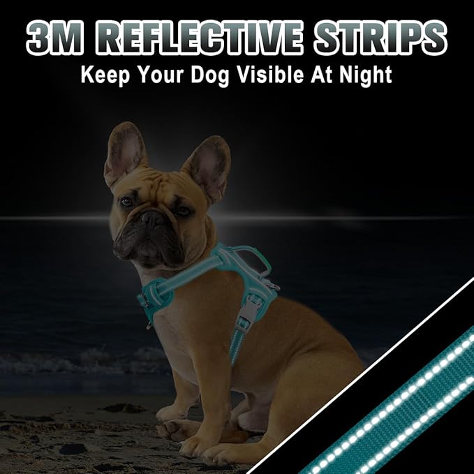 BARKBAY No Pull Dog Harness Large Reflective Dog Harness with Front Clip and Easy Control Handle for Walking Training Running with ID tag Pocket(Ocean Blue,XS)