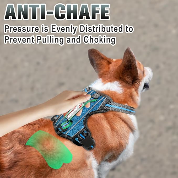BARKBAY No Pull Dog Harness Large Reflective Dog Harness with Front Clip and Easy Control Handle for Walking Training Running with ID tag Pocket(Blue/Black,XS)