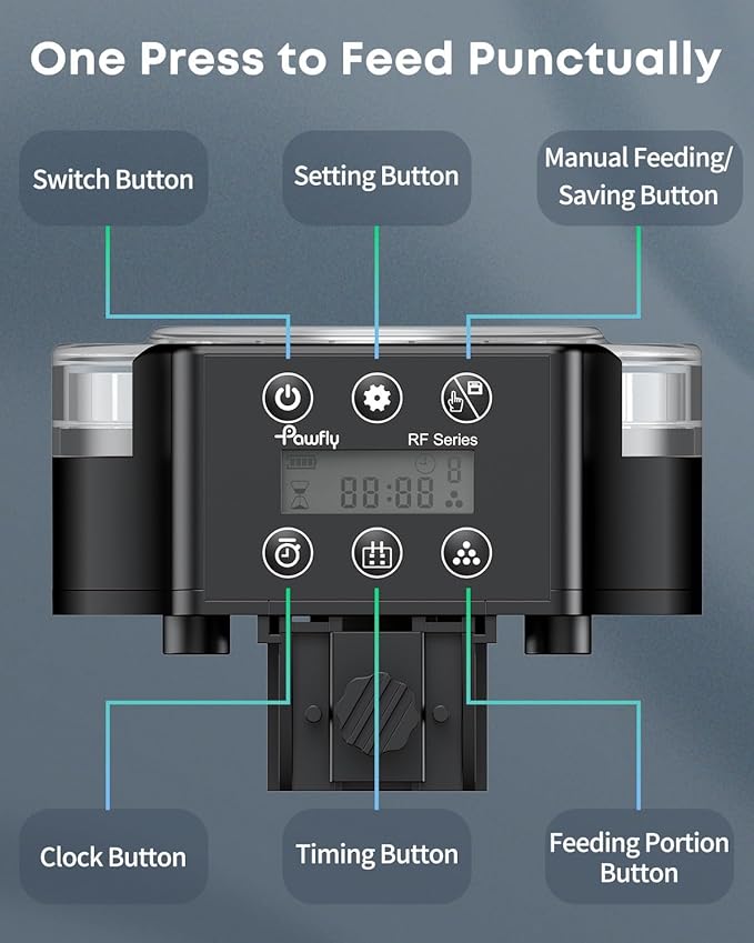 Pawfly Aquarium Automatic Fish Feeder, 108 mL Food Dispenser for Pellets Powder and Granules, Adjustable Timer Feeder for Fish Tank, Battery Powered (Batteries Not Included)