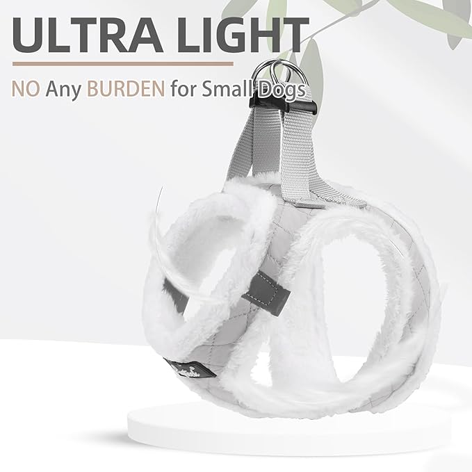 PUPTECK Plush Dog Harness and Leash Set for Small Medium Dogs No Pull Step-in Soft Mesh Puppy Cat Winter Vest Harnesses Reflective at Night Warm, Plush Grey, XS