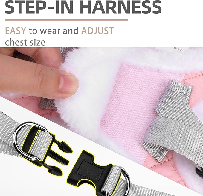 PUPTECK Plush Dog Harness and Leash Set for Small Medium Dogs No Pull Step-in Soft Mesh Puppy Cat Winter Vest Harnesses Reflective at Night Warm, Plush Pink, S