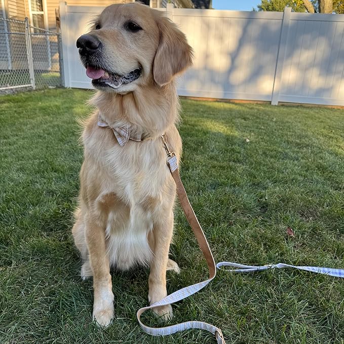 PETDURO Personalized Dog Collar Brown Plaid for Large Medium Dogs | Engraved Name and Phone Number on Gold Metal Buckle for Boys & Girls | Add Leash & Bow Tie via Customize Now