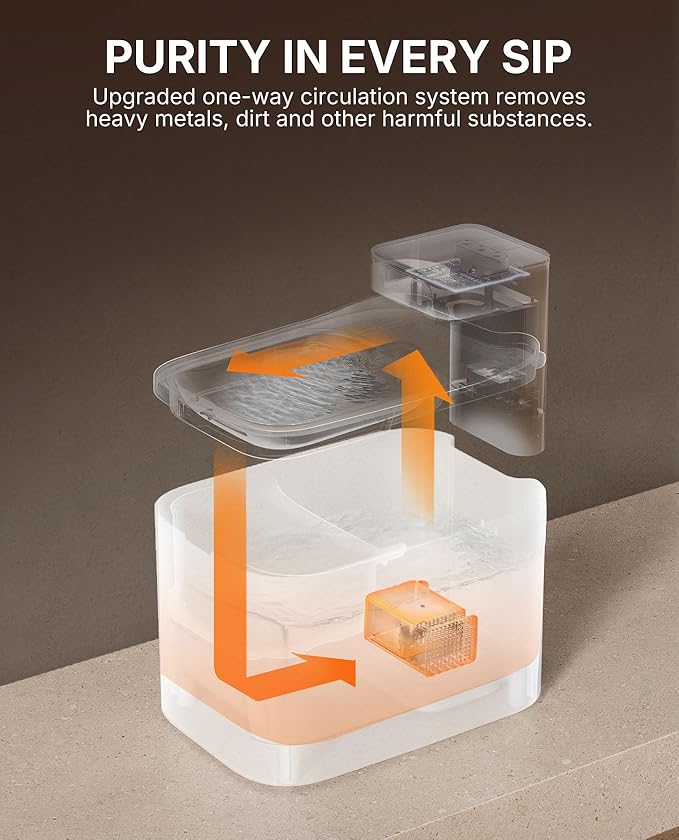 - Fresh Water in Multiple Modes: Motion Sensor mode or customize continuous flow mode, or the intermittent mode based on Pet’s Preference, the multi-layer filter utilizes a unidirectional recirculation filtration system that filters out hair, sediment, dirt, etc., providing pets with a hygienic, pure drinking experience.