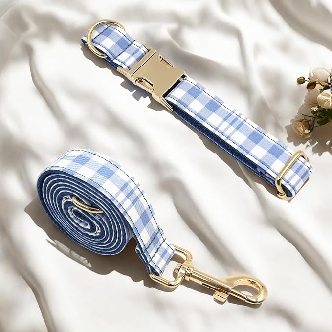 - Custom Engraved for Safety & Style: Keep your boy safe & cool! Our PETDURO personalized navy blue plaid dog collar features a rust-proof gold metal buckle custom-engraved by laser with his name & phone number. Say goodbye to jingling tags.