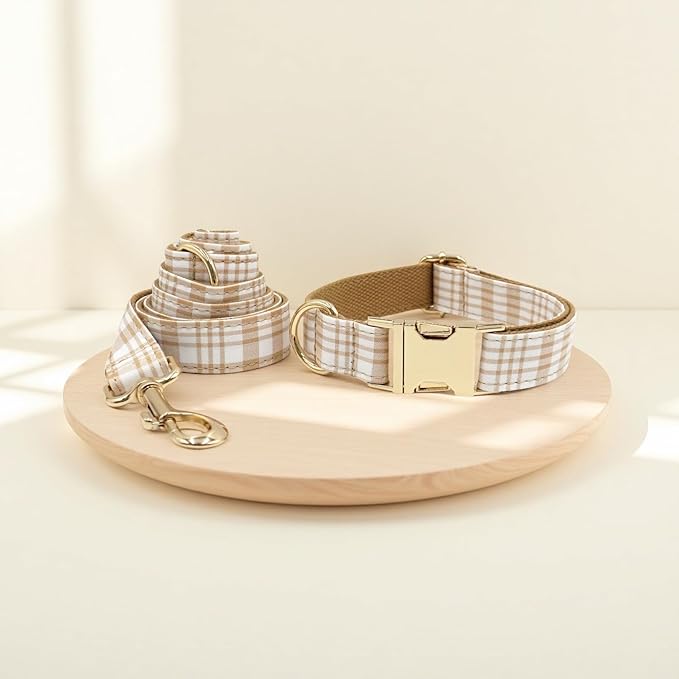 - Custom Engraved for Safety & Style: Keep your pet safe & cool! Our PETDURO personalized brown plaid dog collar features a rust-proof gold metal buckle custom-engraved by laser with their name & phone number. Say goodbye to jingling tags.
