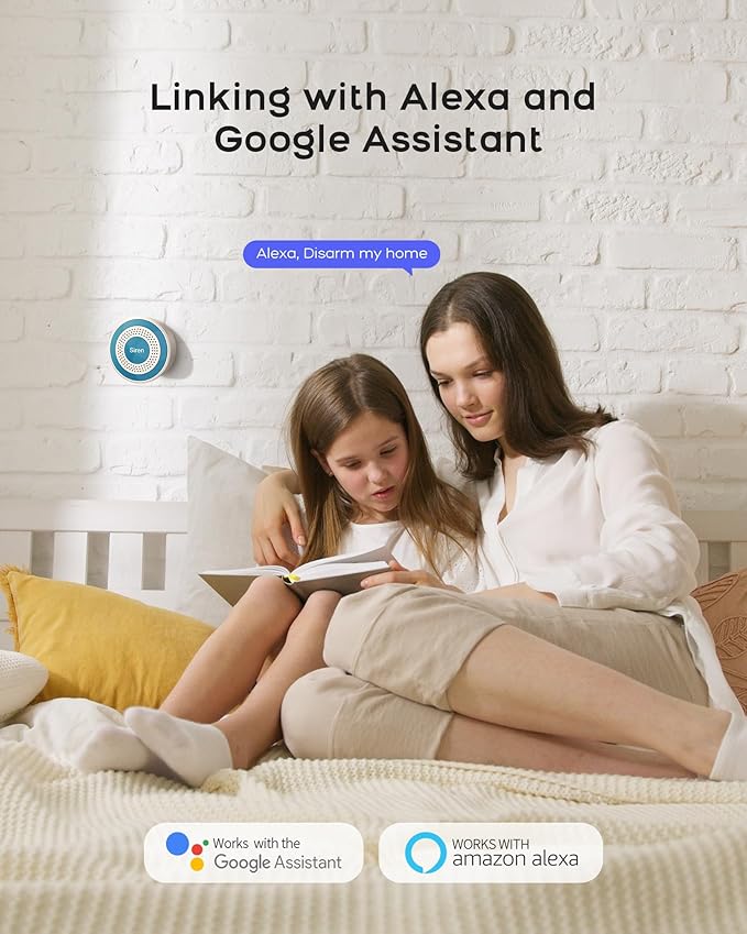 - Voice Control & Wi-Fi Connectivity: The home alarm system is compatible with Alexa and Google Assistant for seamless voice control.