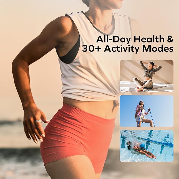 - ✅All-Round Health & Fitness Tracker: 30+ Modes + Actionable Insights: More than a tracker—this ring is your personal wellness companion. It automatically monitors sleep quality (deep, light, REM cycles), real-time heart rate, and stress levels, turning raw data into easy-to-understand insights. With 30+ sports modes (running, yoga, golf, cycling, etc.), it captures detailed metrics like route, calories burned, steps, and workout duration. Whether you’re chasing fitness goals or prioritizing overall health, it delivers actionable steps to help you improve.