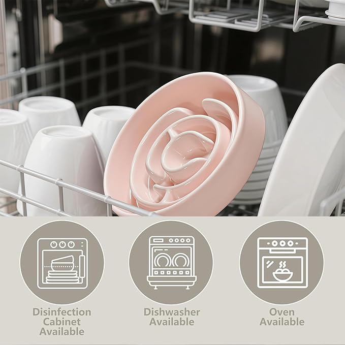 Ceramic Slow Feeder Dog Bowl,1.5 Cups Pet Slow Feeder for Small and Medium Breed,Puzzle Dog Food Dish,Anti-Gulping,Stop Bloat,Preventing Choking(Pink)