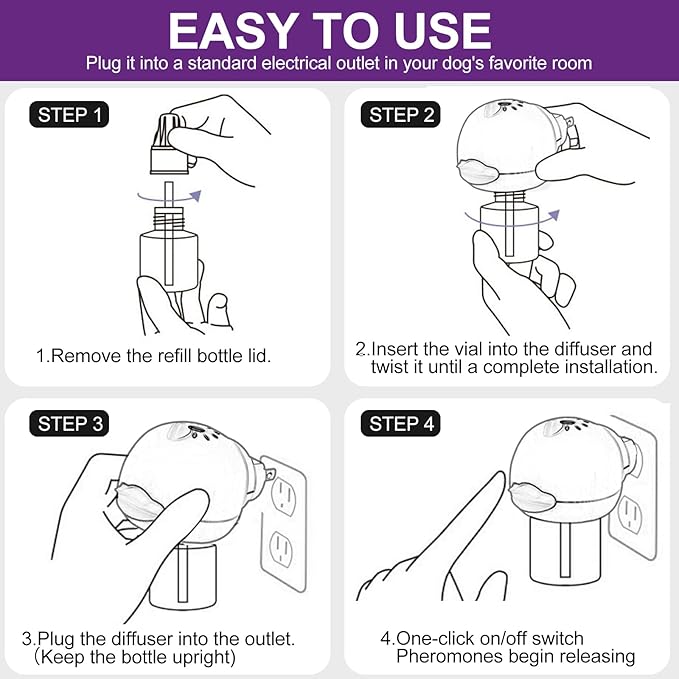 - 【REDUCE STRESS】 The Cheerdog Dog Pheromone Diffuser helps alleviate common signs of stress in dogs, such as pacing, panting, and barking.