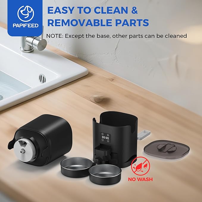 - 【Dual Stainless Bowls + Removable Hopper】Two dishwasher-safe steel bowls + detachable food chamber. This hygienic dual automatic cat feeder simplifies cleaning for healthier pet dining.