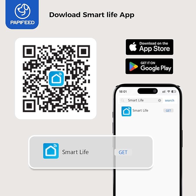 - 【SMART APP CONTROL FOR HASSLE-FREE FEEDING】PAPIFEED auto cat feeder (support 2.4G Wifi) can manually dispense food anytime and anywhere through the APP, and check the feeding record in real time. You can also customize a feeding schedule according to your pet's needs, accurately control the amount of each meal, and scientifically manage dietary health. Tip: When powered by a backup battery, the feeder will remain offline (unable to connect to the APP), but it will still strictly implement the preset feeding plan to ensure that your pet eats on time.