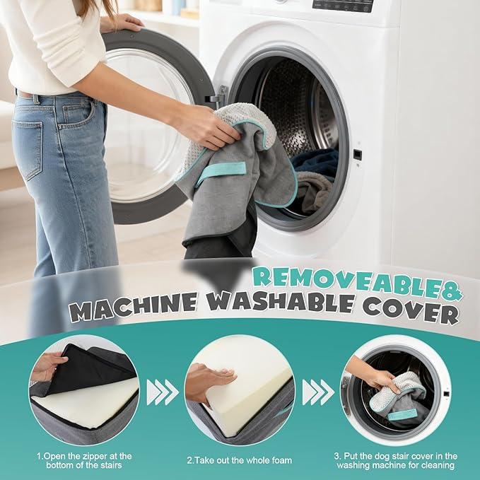 - EASY TO CLEAN - The dog step has a removable washable cover made of bonded fleece that can be hand washed or machine washed, so you don't require spending a lot of time cleaning it. It's very convenient.Note: The foam interior should not be cleaned.