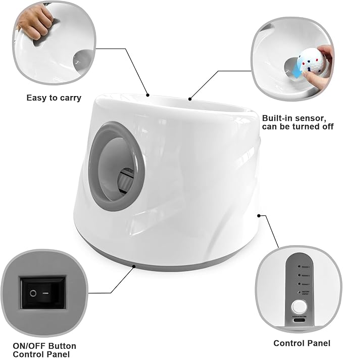 - INTERACTIVE PLAY: Automatic ball launcher shoots balls between 20-45 feet with adjustable distance settings for customized play sessions