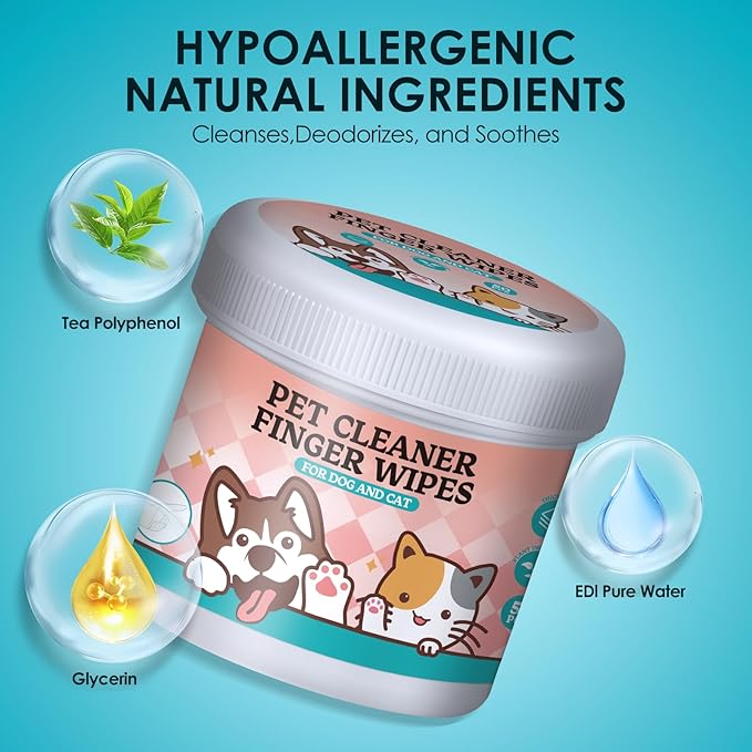 Pet Finger Wipes for Dogs & Cats, Gentle Dental Cleaning Wipes, Dog Finger Toothbrush Wipes, Helps Remove Plaque & Tartar, Fresh Breath Care (50 PCS)