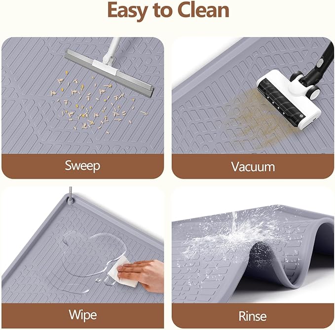 - Comfortable and Lasting Mat: The cat litter mat is made of high-quality silicone, offering a soft texture that protects your cat's paws. Silicone mat is not easy to deform, not easy to damage, and can effectively prevent water seepage, protect your floors.