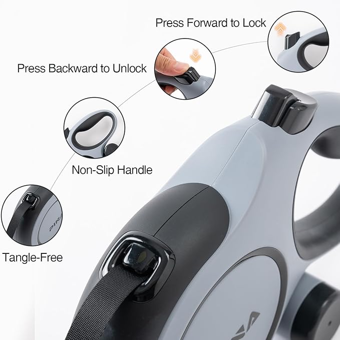 - SAFE & COMFORTABLE CONTROL: Featuring a one-touch locking brake (thumb-controlled) and an ergonomic non-slip handle, this leash ensures secure, effortless walks. Perfect for stress-free training and extended outdoor adventures