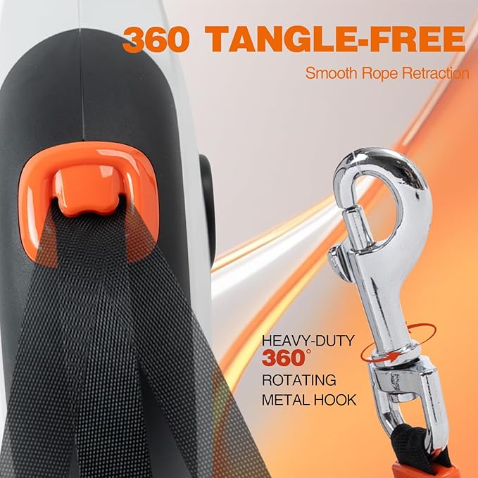 - TANGLE-FREE RETRACTABLE LEASH: Featuring a heavy-duty nylon cord designed for dogs up to 110lbs, our upgraded leash resists knots and snags for hassle-free use. Enjoy smooth, quiet retraction and effortless control—perfect for strong, active dogs