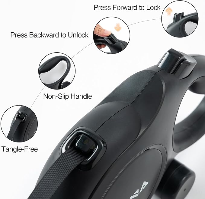 - SAFE & COMFORTABLE CONTROL: Featuring a one-touch locking brake (thumb-controlled) and an ergonomic non-slip handle, this leash ensures secure, effortless walks. Perfect for stress-free training and extended outdoor adventures