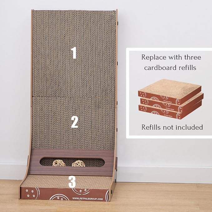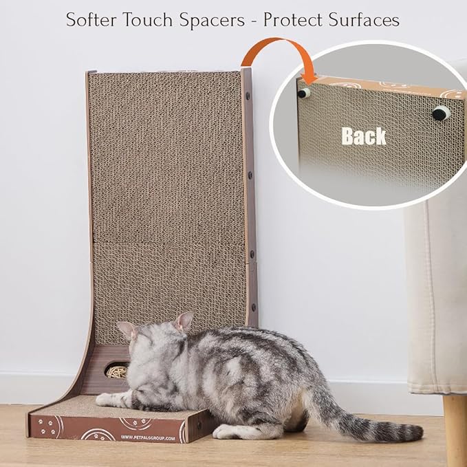 Petpals 24" Double Sides L Shaped Cat Scratch Pad, Corrugated Cardboard Scratching Pad, Replaceable Long Lasting Scratcher,Cat Scratcher with RattanBall Toys.