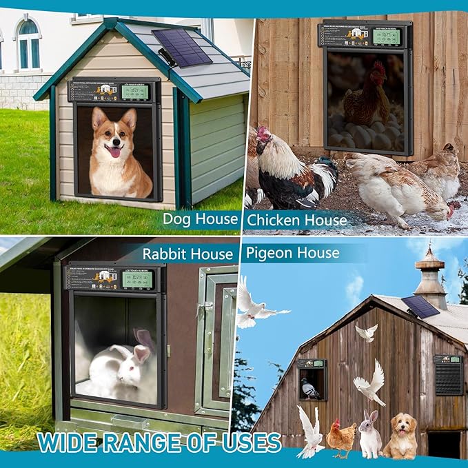 - 【Usage and precautions Dog Door】1) You need to measure your pet's height and width first to ensure that the door size is correct. 2) Before using the dog door, connect the solar panel first. Then, press the white switch on the back of the solar panel (the green light indicates normal power supply. After that, use the switch button on the automatic dog door or the remote control to test if the door opens and closes properly. If you need to power the dog door via USB, keep the USB cable connected at all times, as the dog door does not have a built-in battery. 3) Avoid direct sunlight.Use a cover or shade to protect the door from overheating,too much heat may cause damage and failure.
