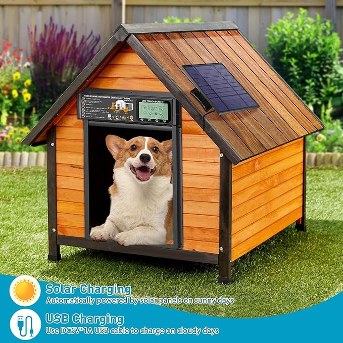 - 【Flexible Power Options】Understanding the importance of reliable operation, we've equipped this electronic dog door with dual power supply options to accommodate various installation scenarios.Pet door equipped with a solar panel and USB charging port, ensuring uninterrupted operation and flexibility in powering your pet door. You can enjoy the convenience of automatic open and close, without worry about power outages or difficult electrical access.