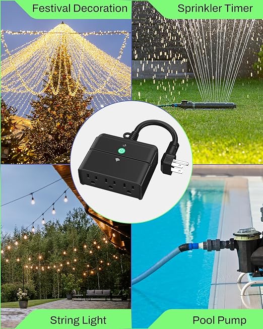 - [CONTROL MULTIPLE DEVICES] BN-LINK outdoor smart plug controls up to 3 devices at once (not individually). Great outdoor timer outlet waterproof option for holiday lights, garden decorations, and other outdoor electronics.