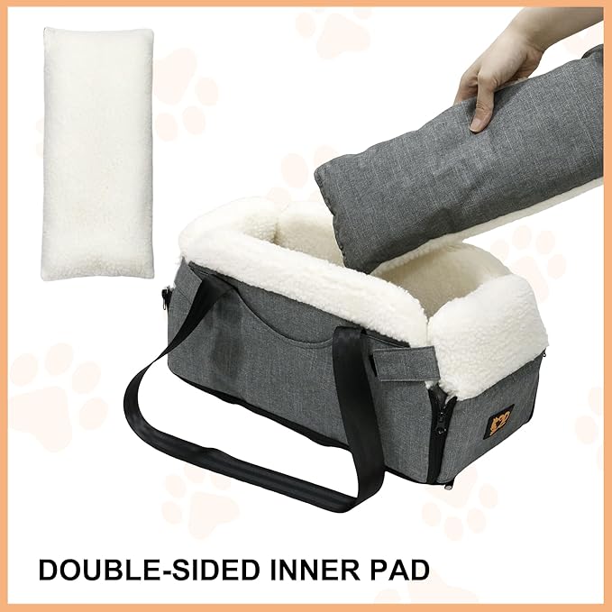 Center Console Dog Car Seat for Small Dogs, Dog Booster Seat with Upgraded Safety Tethers, Detachable Washable Pet Car Seat Travel Bed Under 25lbs(Grey)