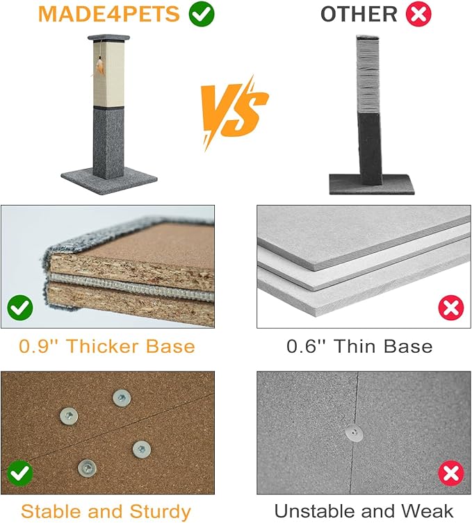 - WIDER & STRONGER BASE – Built with a reinforced 16"x16" square base, this scratching post stays steady and secure even with large cats jumping or climbing, eliminating tipping and wobbling.