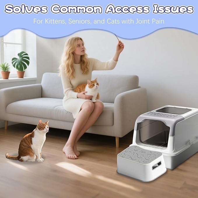 - 【Elevated Ramp for Easy Access】This cat litter mat features an inclined ramp design, offering easy, joint-friendly access for kittens, senior cats, and mobility-limited pets. It integrates seamlessly with any litter box mat or step-up litter setup—including automatic and smart litter boxes—reducing litter scatter and minimizing floor mess.