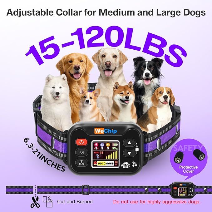 WeChip Wireless Dog Fence Collar, Adjustable 6-22 Inches, for Dogs 15-120 lbs, 3 Correction Modes
