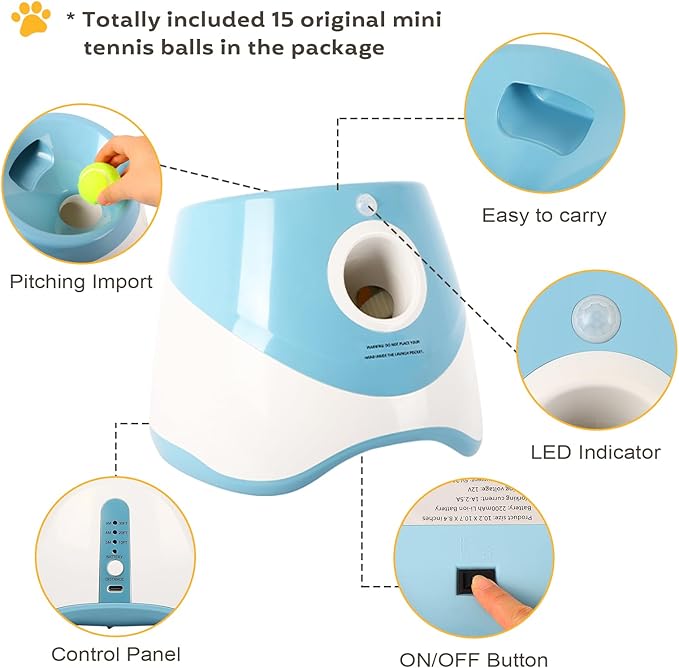 - Automatic Ball Thrower for Dogs:Small dogs like playing fetch,with the automatic dog ball launcher, your dog can be able to enjoy its favorite game happily everyday.