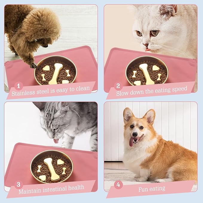 • ✅ 【Innovative Slow Feeder Dog Bowls for Healthier Eating】 Our stainless steel dog slow feeder bowl features 3 unique designs (Bone & Heart, Dog Claw, Dog Face) with raised obstacles to slow down fast-eating pets. Perfect as a dog bowl for fast eaters, it prevents bloating and choking in dogs and cats. Works as a puzzle bowl for small dogs or large dog slow feeder bowl, keeping mealtime engaging and safe.